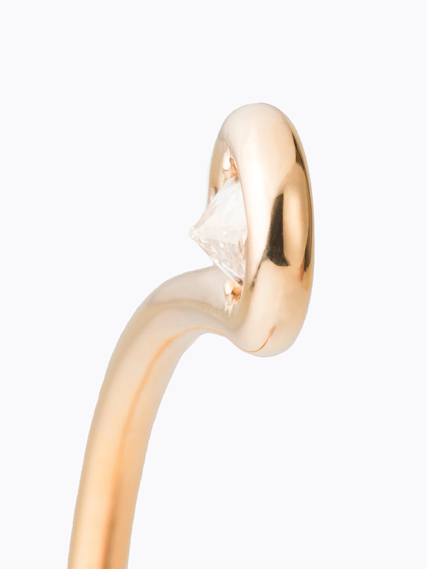 天然ダイヤモンドは高価であるがゆえに無意識に実績のある堅実なセッティングが採用されています。ラボグロウンダイヤモンドは、新しい製法へのチャレンジ精神を駆り立て、金属とダイヤモンドが生み出す伝統的なデザイン形式からの脱却と大胆な表現を生み出しました。