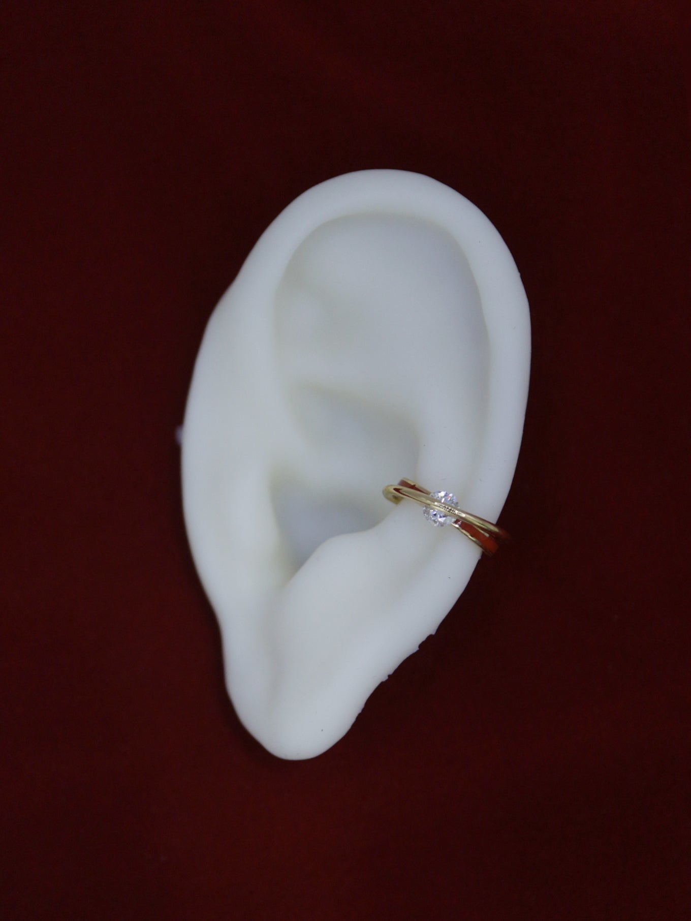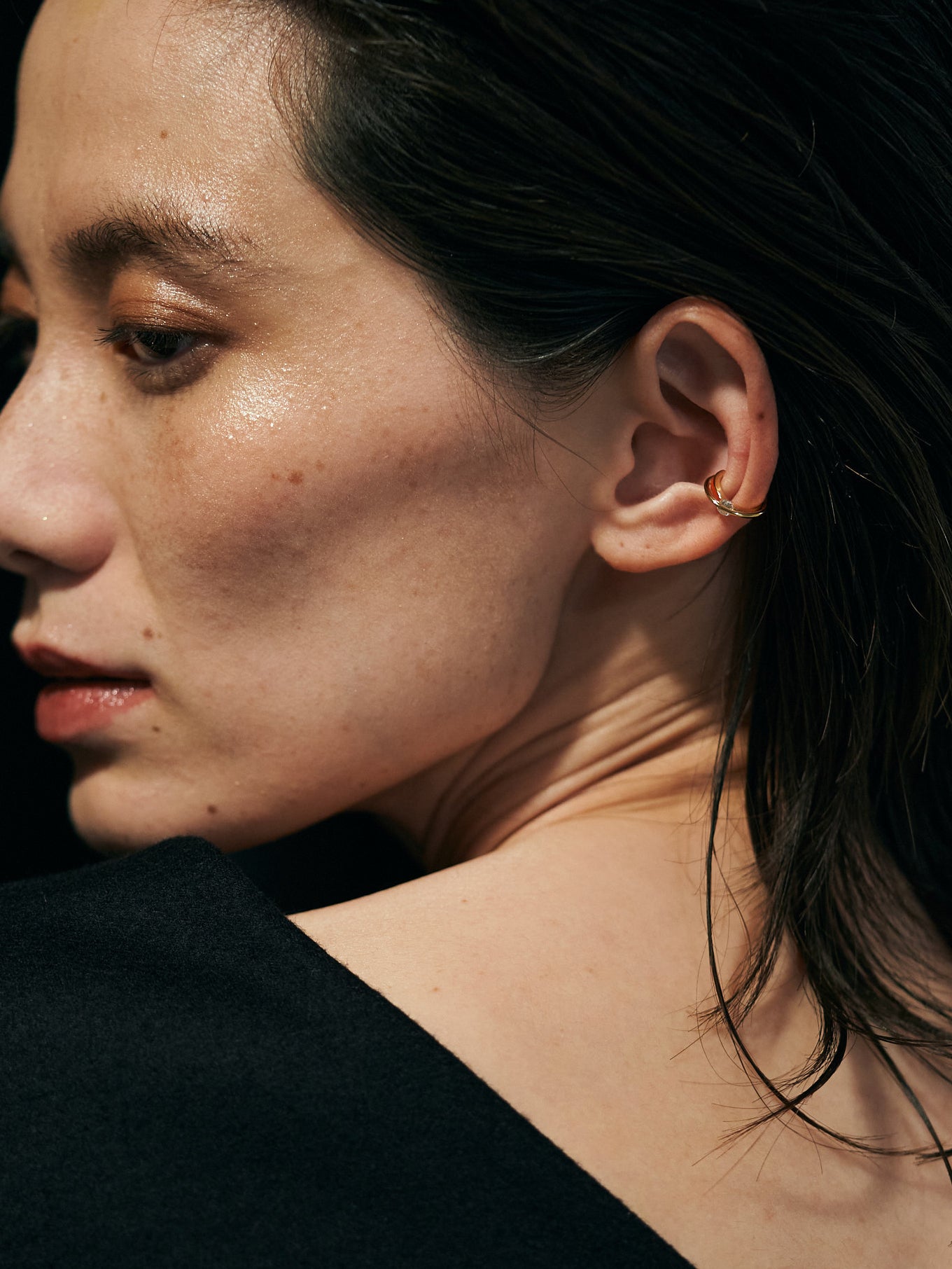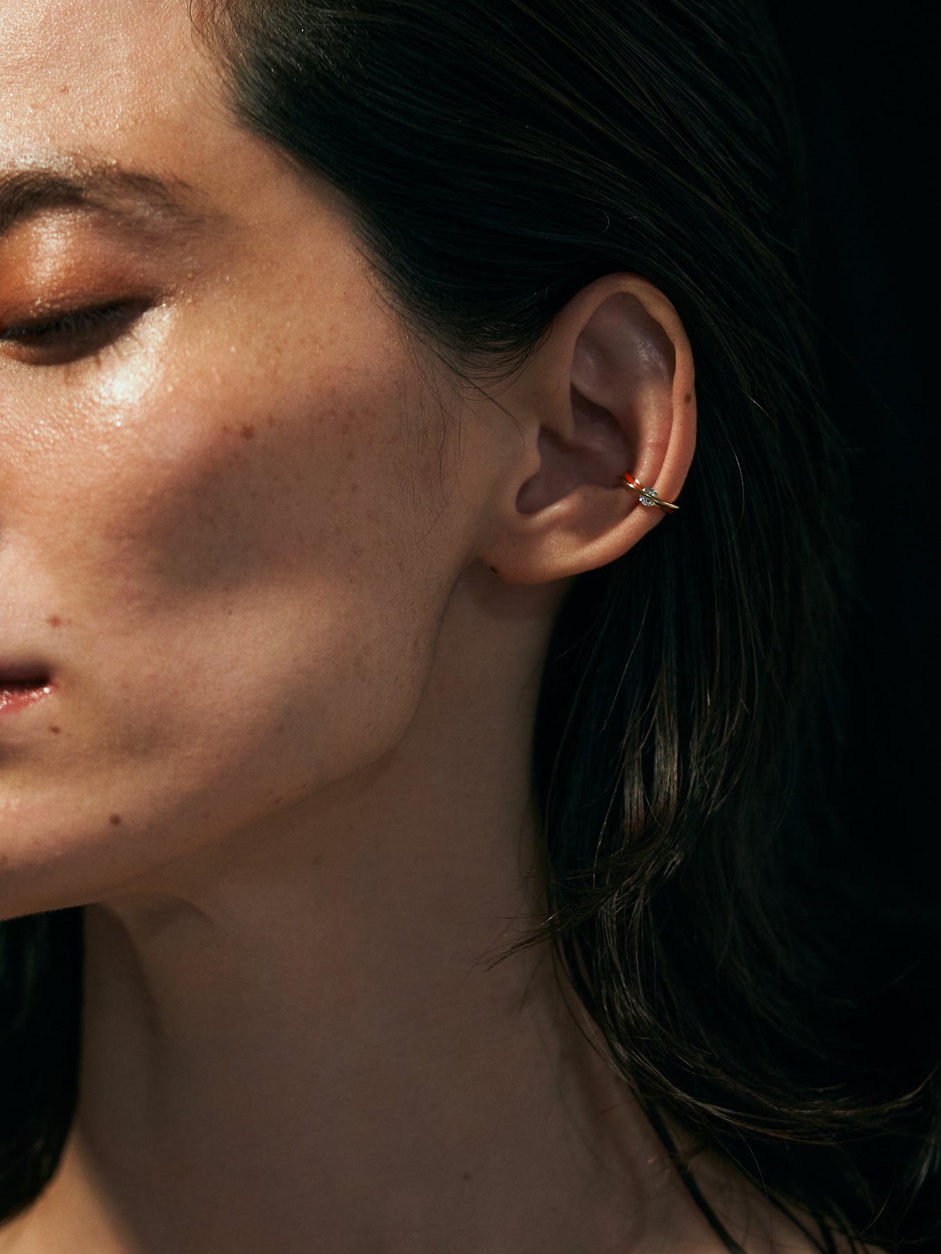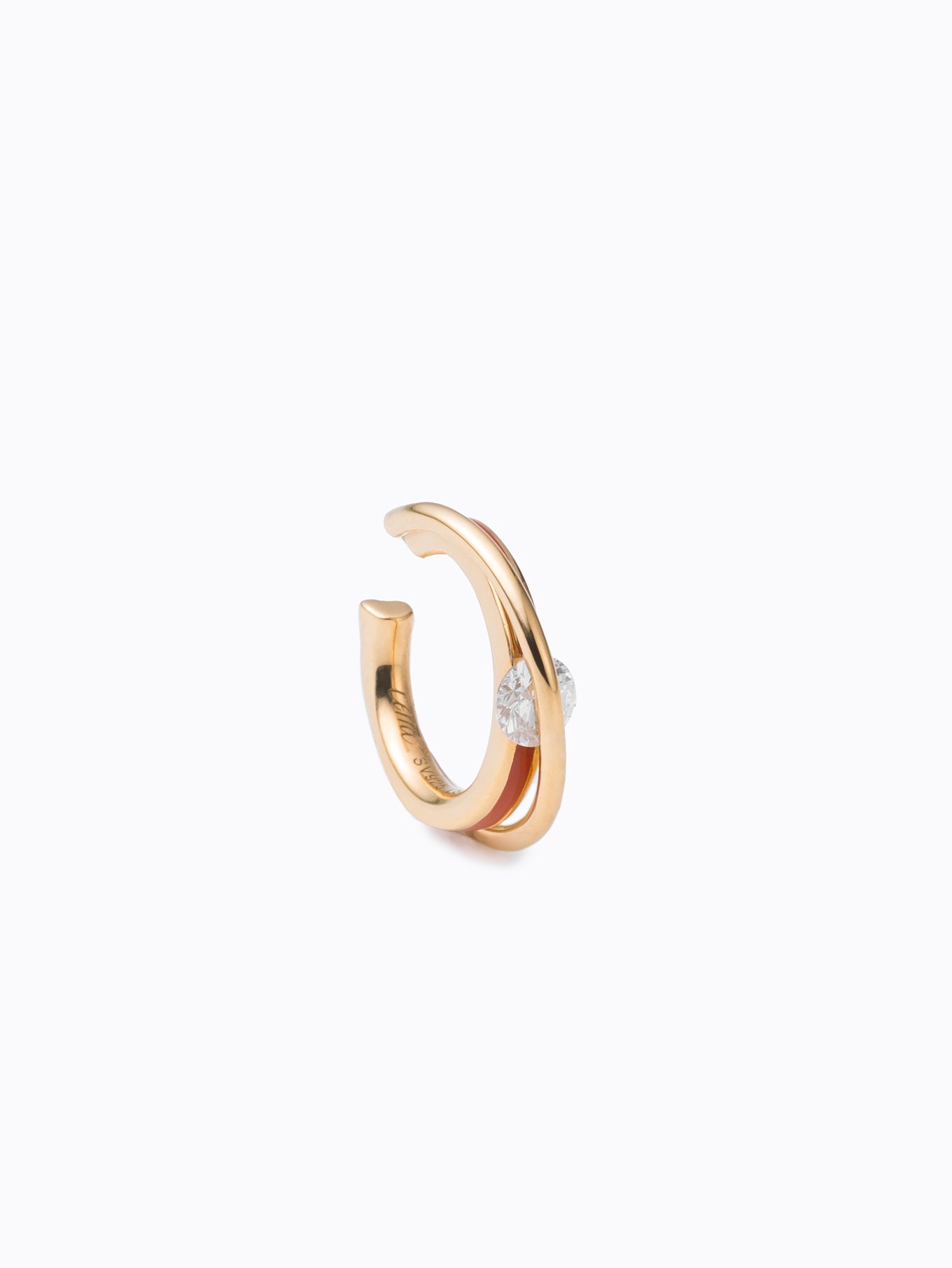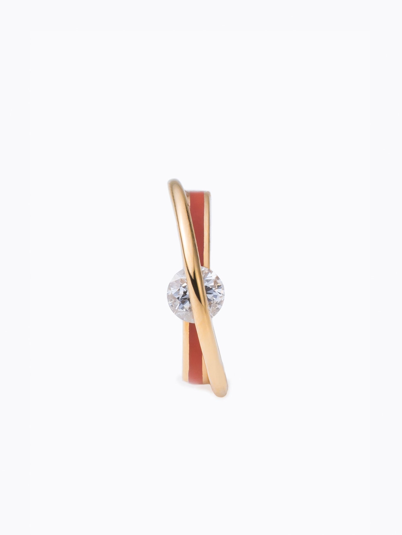 上下の地金でダイヤモンドを挟むようにセッティングしたイヤカフ。”SUN”カラーは、職人が1点ずつ着色。ダイヤモンドの表面を地金が横断するデザインは石の側面を露わにし、新たな表情を生み出します。