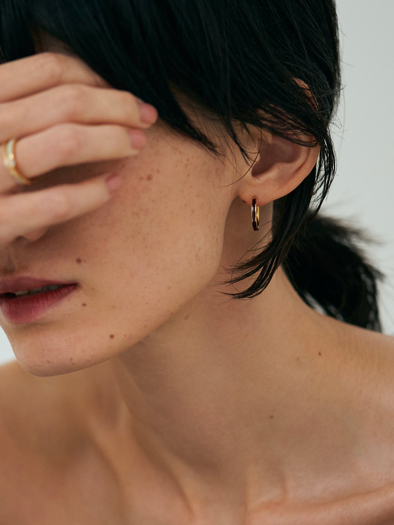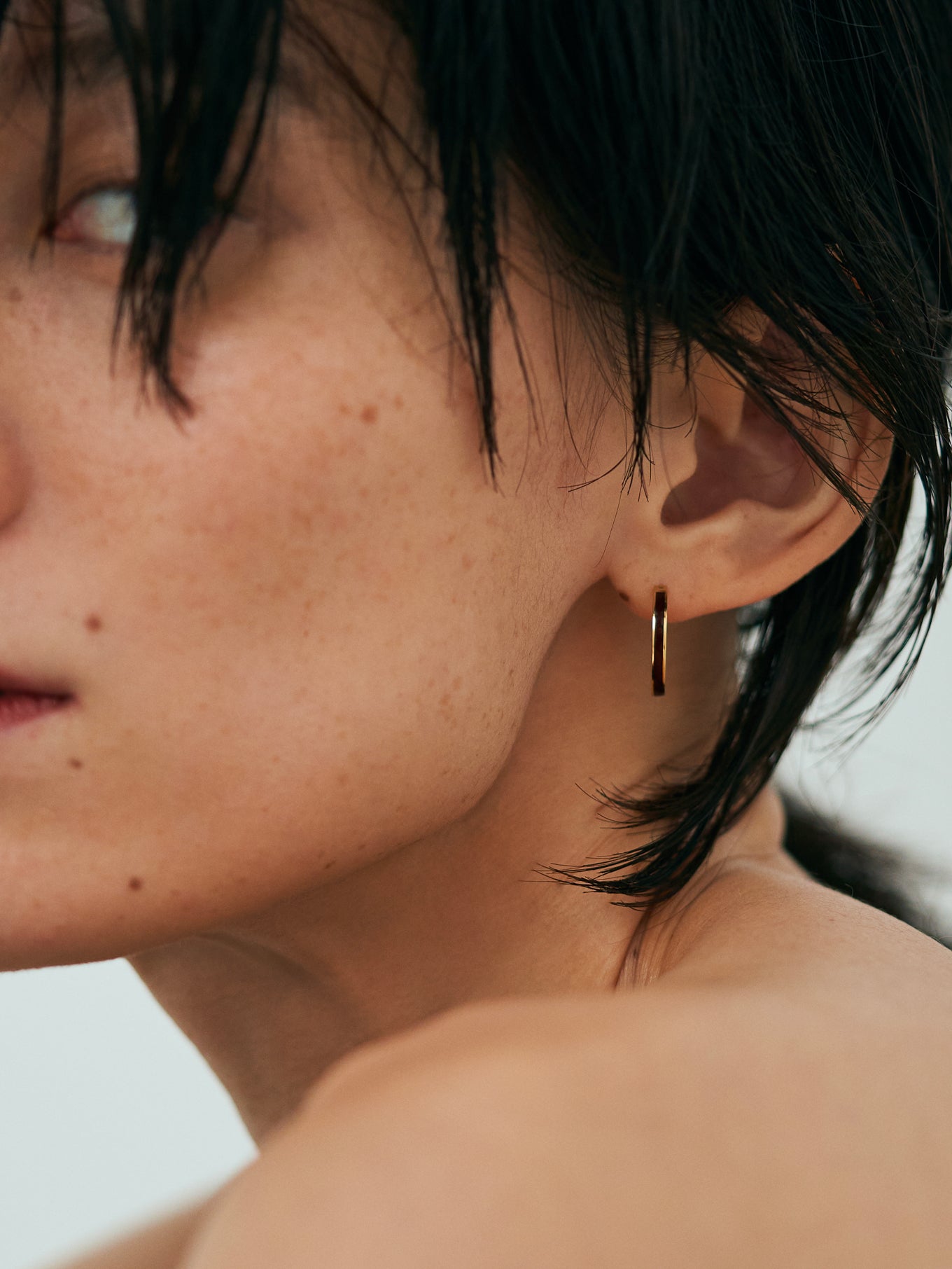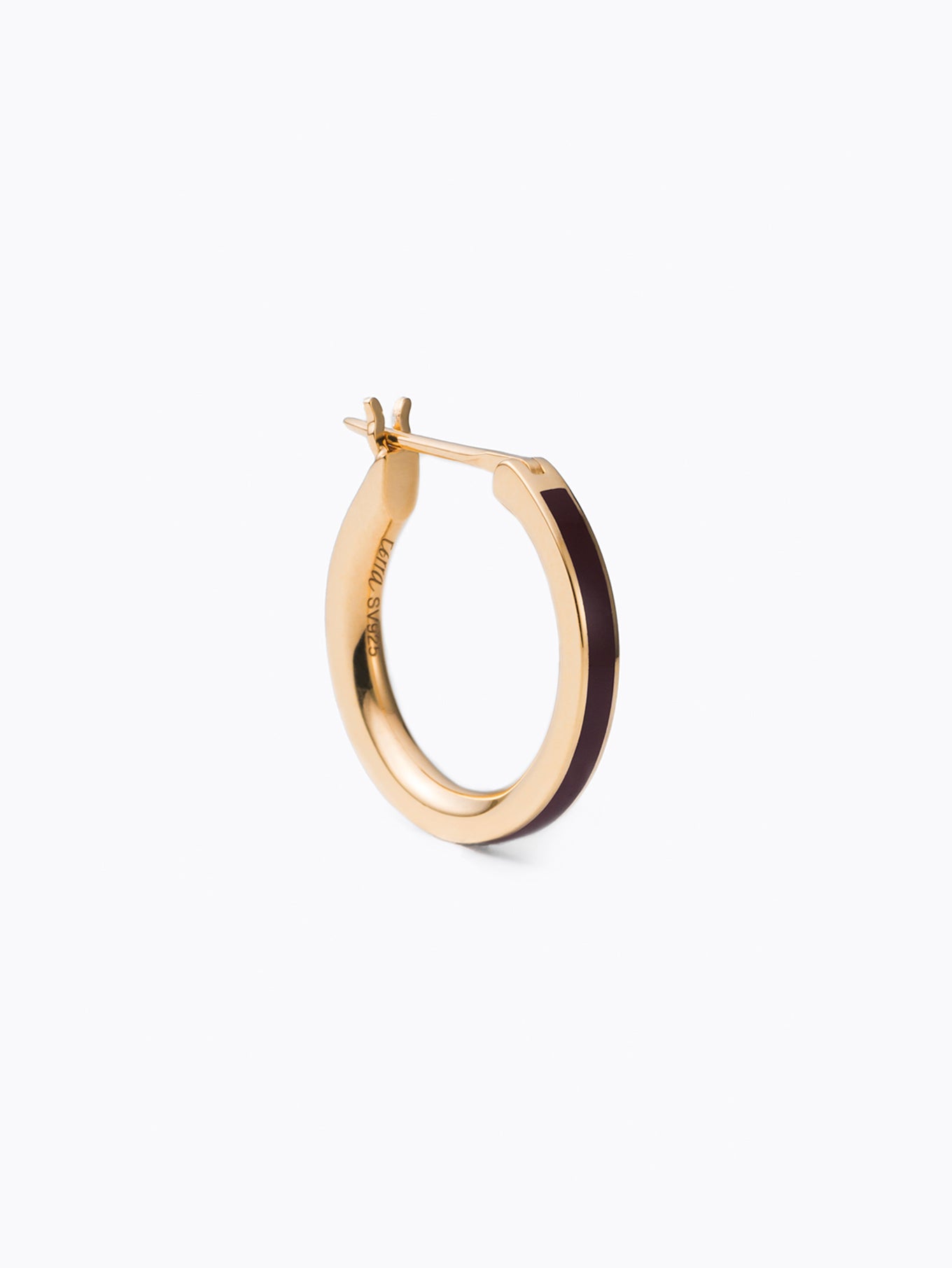 タイムレスなデザインのシングル・フープピアス。印象的な”BLOOD”カラーは、職人の手で1点づつ着色しています。Engageコレクションのピアスやイヤカフとの組み合わせをお楽しみください。